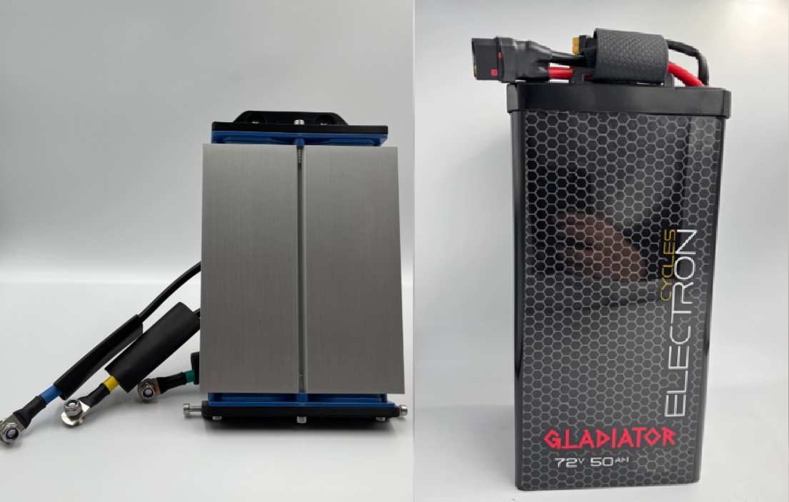 Gladiator V2 sits just 5mm higher than the OEM battery in the bike. Just like its bigger brothers in the Electron Cycles Battery List, we have used the best, super tough, 316 marine grade stainless steel casing, powder coated inside and out, it has the big ANT BMS, a single QS8 6AWG cable and pure copper sheet connections. Supplied with a high power bike side loom.