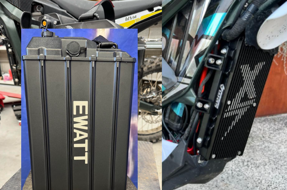 Our recommend power setting with the EBMX X900 is 220A DC or 17000Kw and 660PhA. The bike becomes an animal, a real weapon. Full range is available from this huge 5862Wh battery (this almost 4 times more power than a standard Sur Ron Light Bee battery and over 50% more usable power than a Sur Ron OEM Ultra Bee.